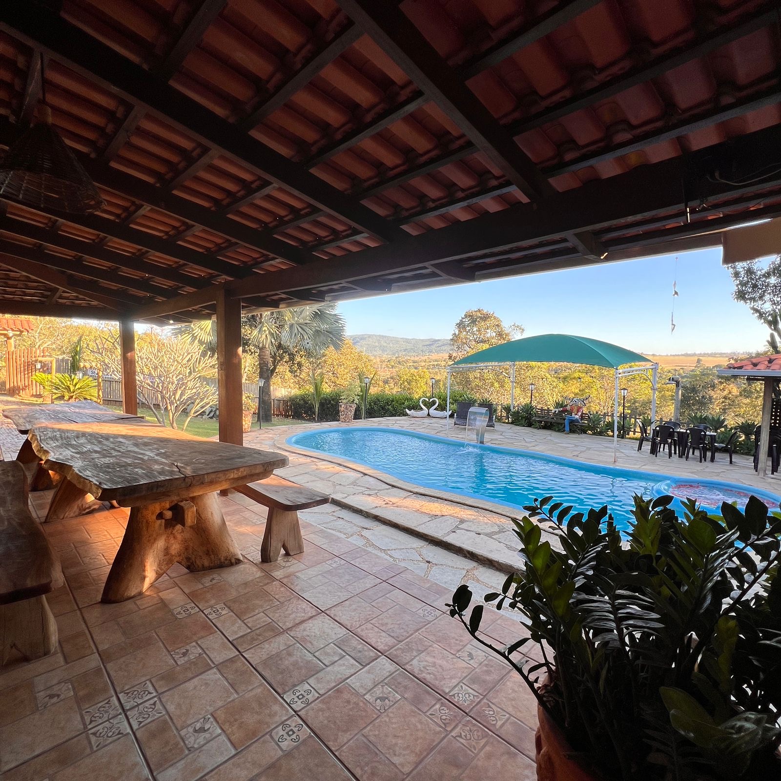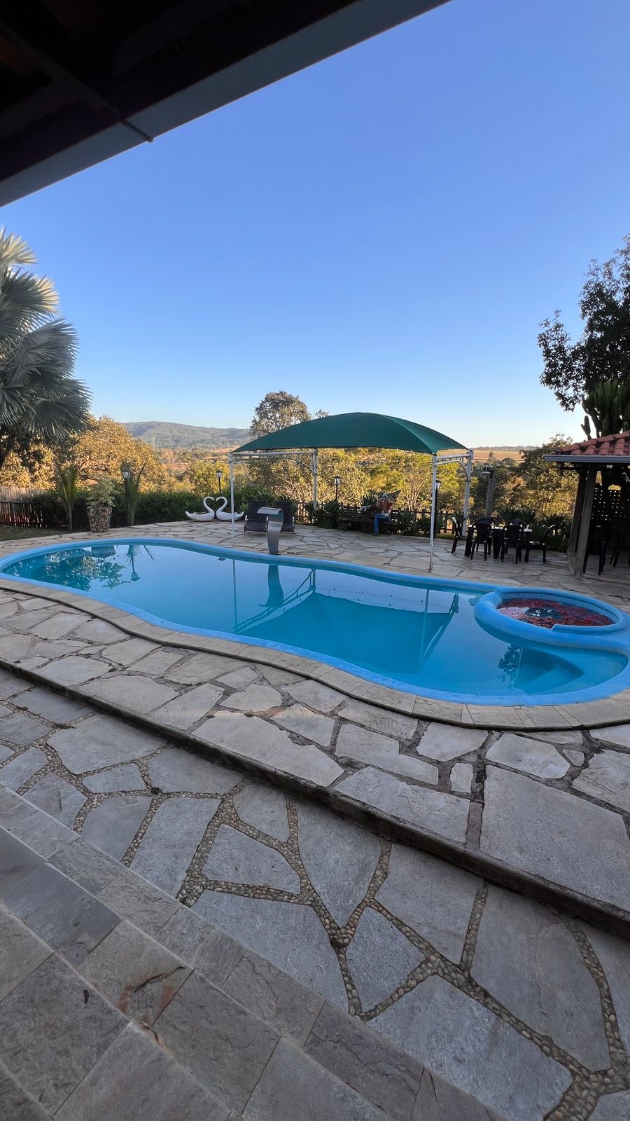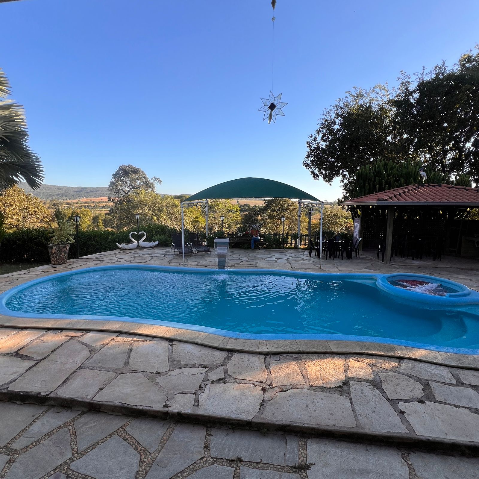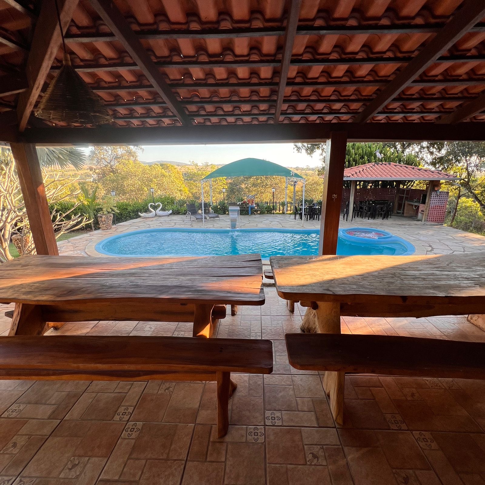 Chácara localizada a 4 km da cidade, sendo 2 km de estrada de chão, ideal para famílias e grupos que buscam conforto e tranquilidade em meio à natureza.