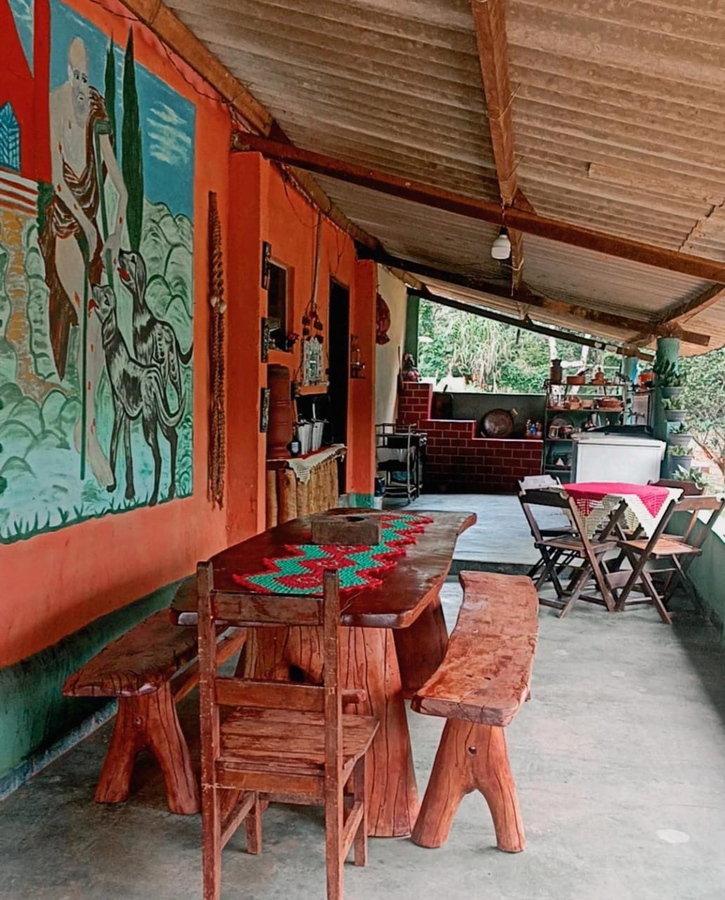 • Mesa rústica com bancos
