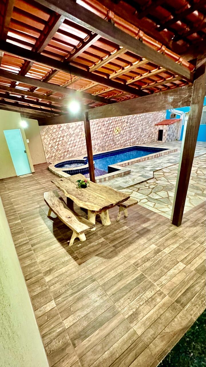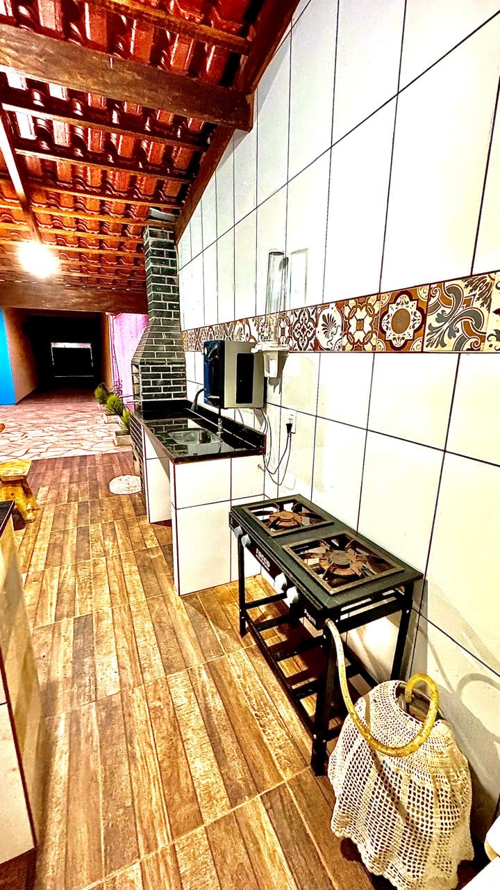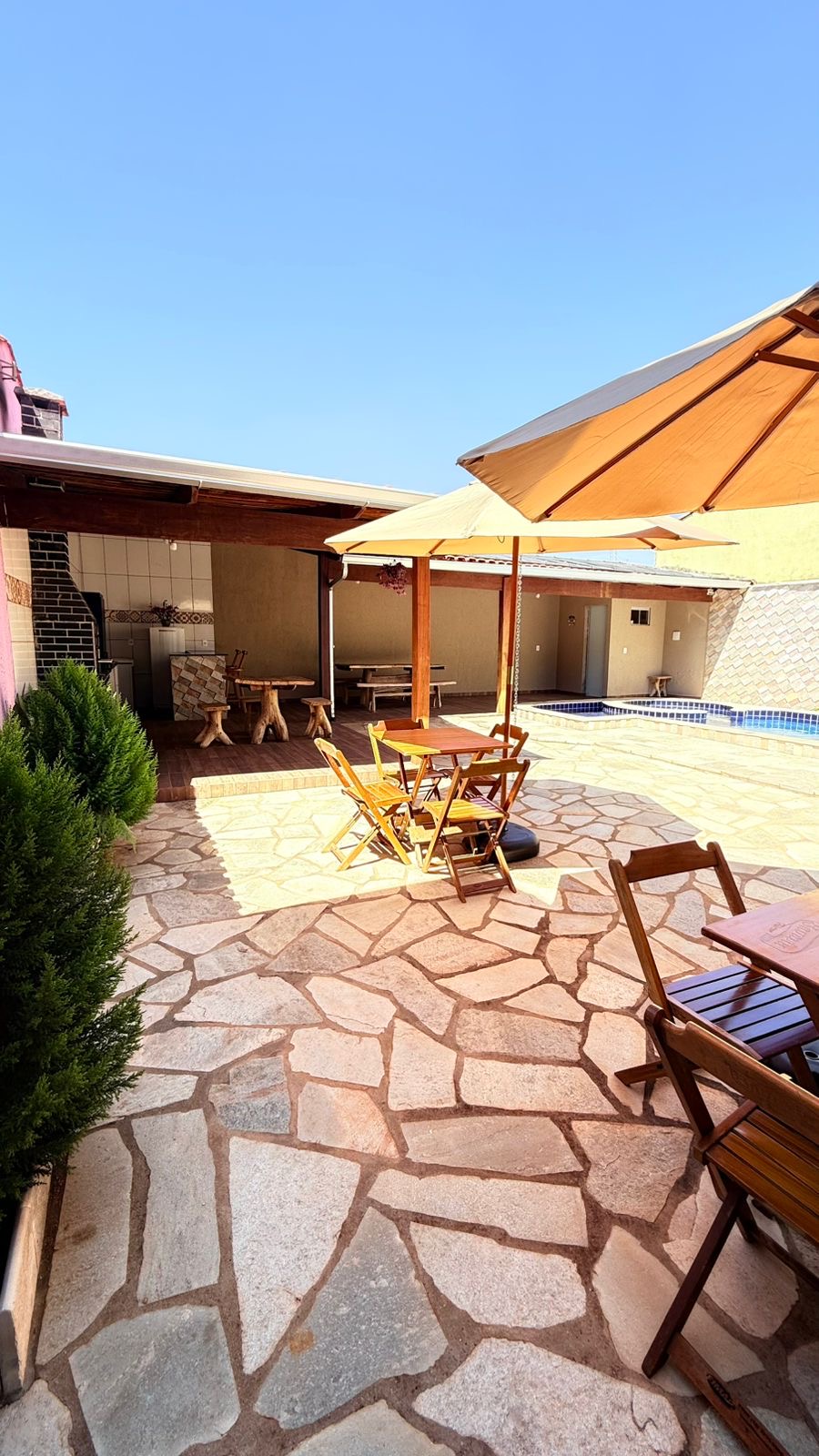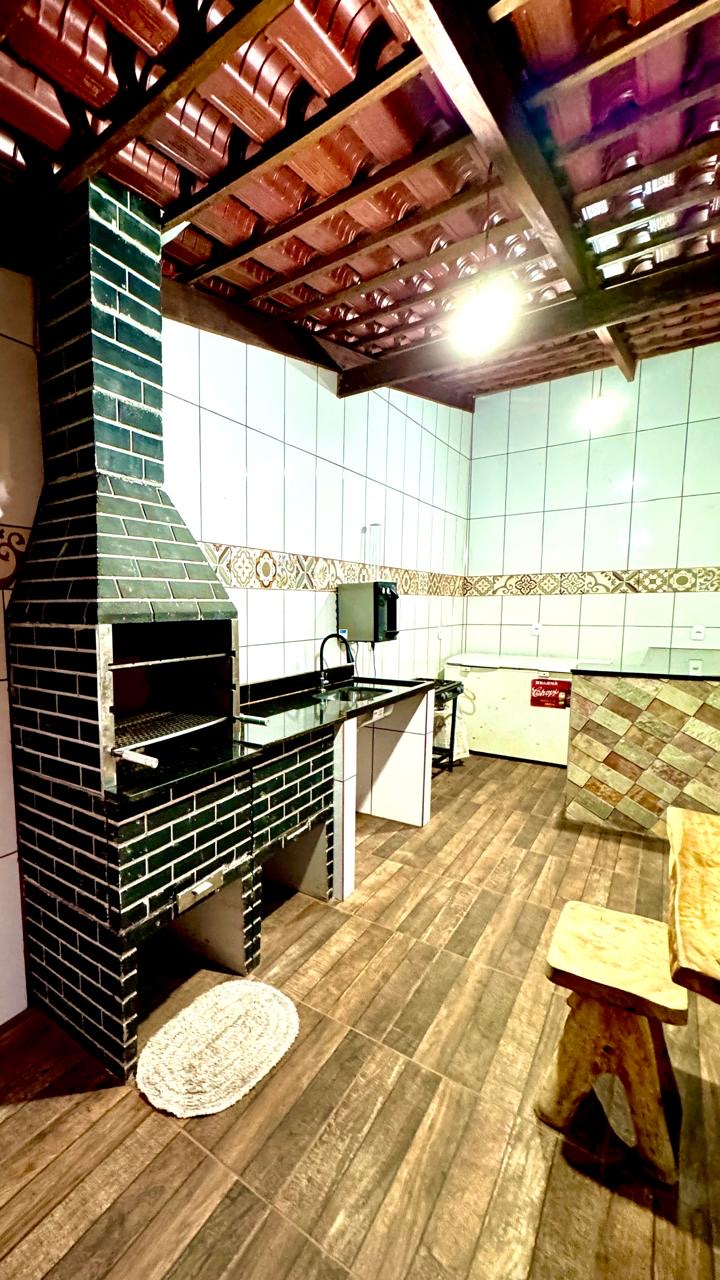 • Área com churrasqueira e mesa rústica