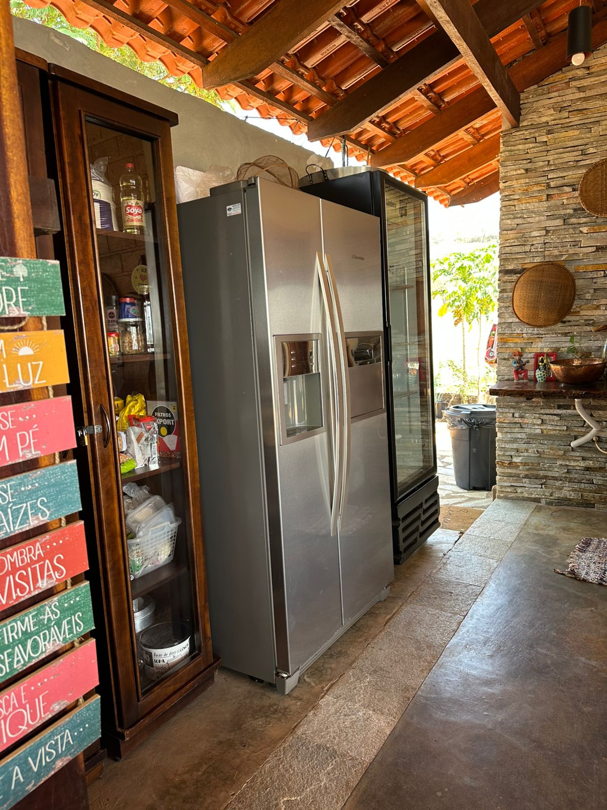 • Cozinha equipada com fogão a lenha, cooktop, geladeira, cervejeira e utensílios completos